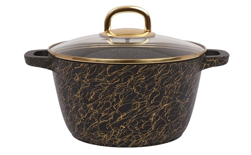 Кастрюля 4,5л со стеклянной крышкой АП линия Грация черный/золото кчз45а (3/1)