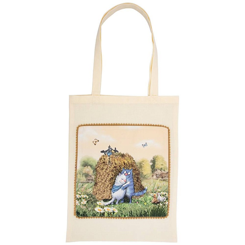 СУМКА СИНИЕ КОТЫ ПРО ЛЮБОВЬ 30Х40СМ КРЕМ 100% ХЛОПОК ТВИЛ 850-720-5 (1)