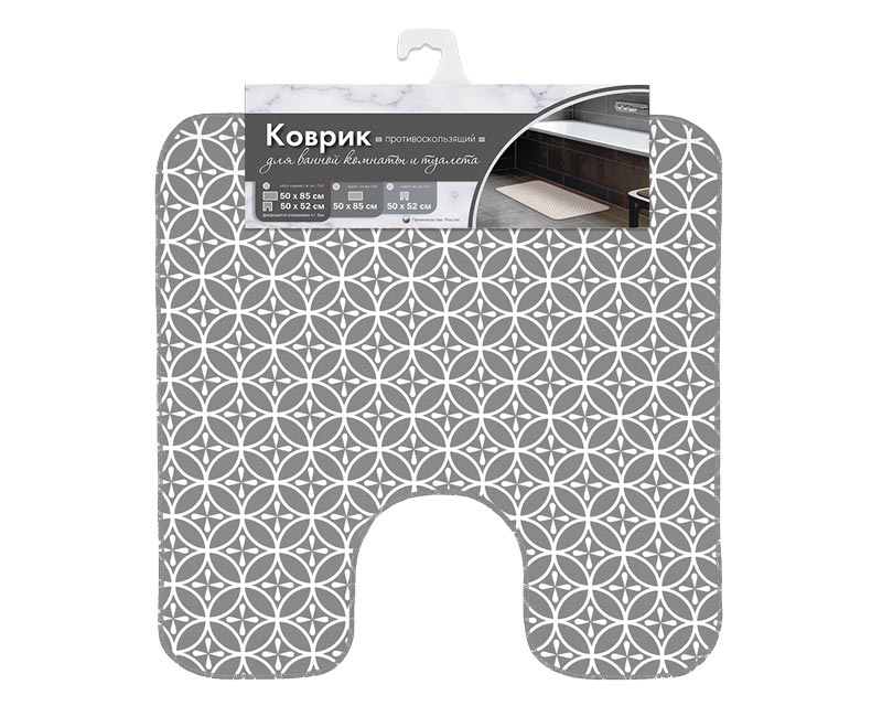 Коврик для туалета 50х52 см (противоскользящий) 7069-002-grey (10/1)