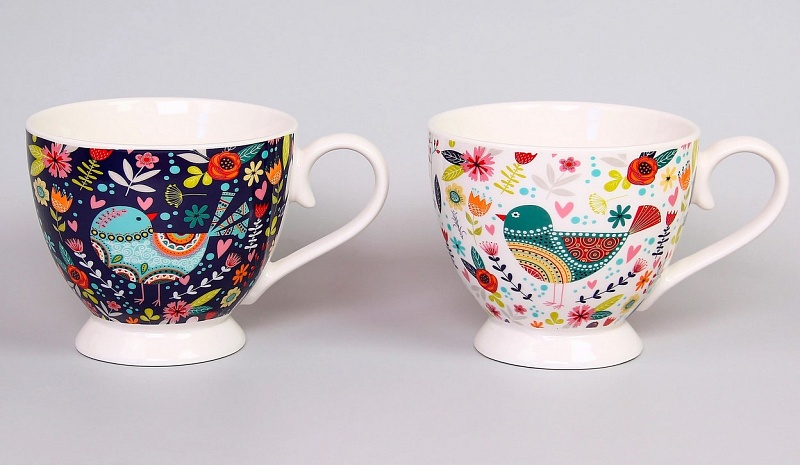 Фарфоровые кружки, пиалы и бульоницы