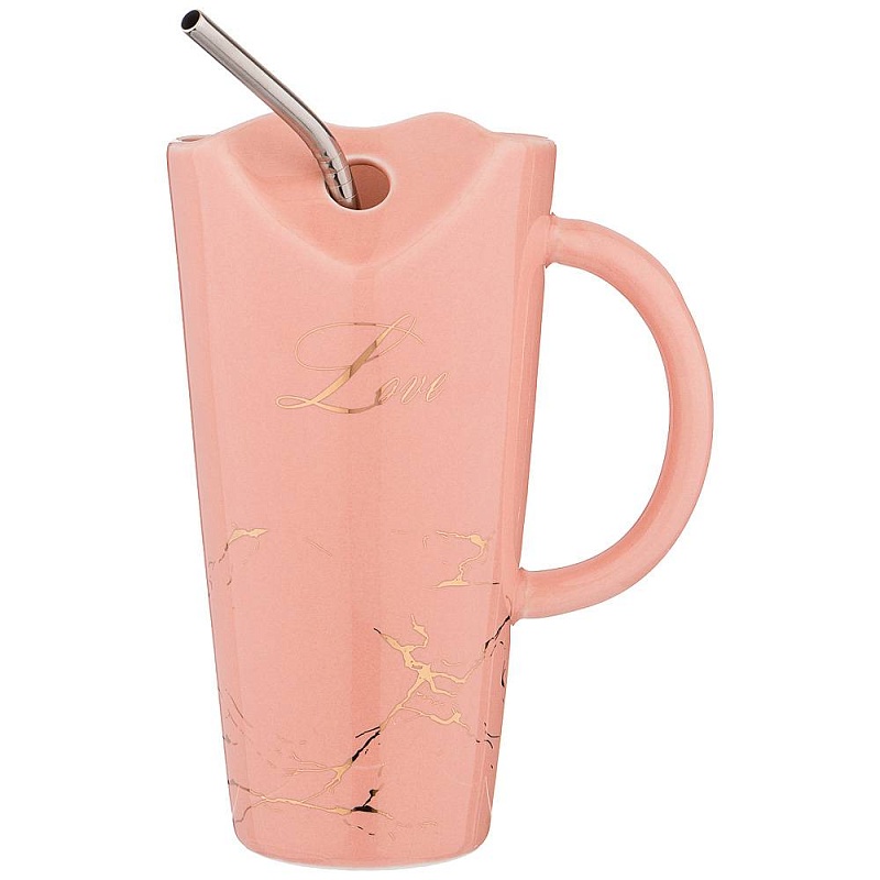 КРУЖКА BREAK TIME С МЕТАЛЛ ТРУБОЧКОЙ 480МЛ РОЗОВАЯ 90-1002 (60/1)