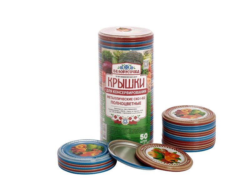 Крышки металлические для стеклянных банок СКО I-82 упак 50шт Белорусочка (12/1