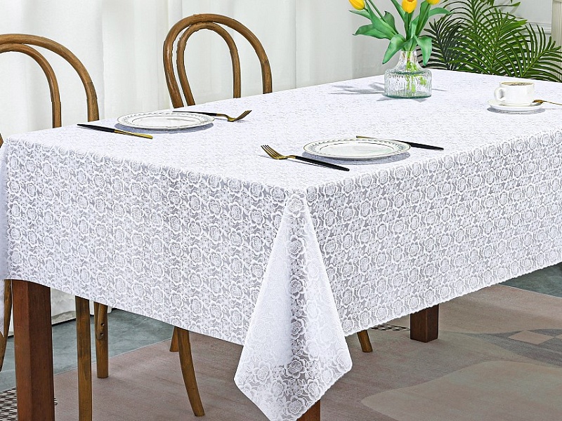 Клеенка для стола матовая кружевная Лэйс Лайт из ПВХ без основы удобна в эксплуатации и является хорошим вариантом для практичной хозяйки, ведь она не только защищает стол, но также выполняет декоративную функцию.
