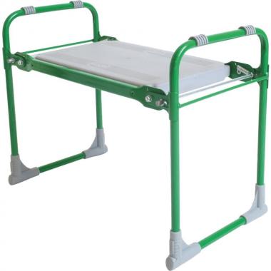 Садовая складная скамейка с мягким сидением имеет габариты в упаковке — 645х325х115 мм. Размеры в разложенном виде — 560х300х425 мм. Размер сиденья — 380х265 мм. Материал: каркаса — стальная труба, сиденья — пластик. Допустимая нагрузка не более 100 кг. Дополнительные особенности: две рабочие стороны — в перевернутом положении комфортно работать на дачном участке, опираясь коленями во время посадки, прополки и сбора урожая сохраняя одежду чистой, к тому же упор на руки при опускании и подъеме снимает нагрузку с колен и спины. Преимущества: легкая и устойчивая, удобно в обращении, компактное хранение. Цвет каркаса — зеленый, цвет сиденья — серый. Область применения — для работы в саду и на дачном участке, а также в качестве походной скамейки во время активного отдыха и рыбалки.