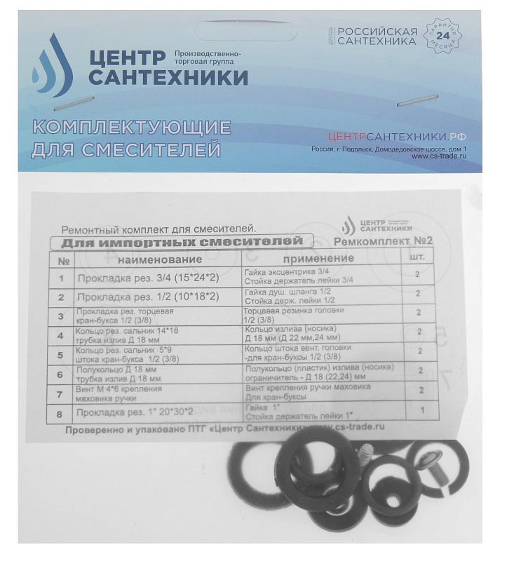 НовинкаРемкомплект для импортного смесителя ЦС (Ремкомплект №2 НОВЫЙ)Артикул: 122430Нет в наличии32 ₽