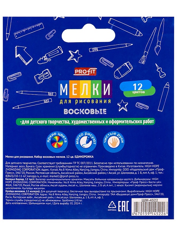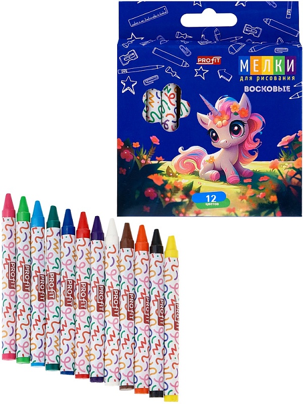 Набор восковых мелков для дет. творч. ЕДИНОРОЖКА,12цв