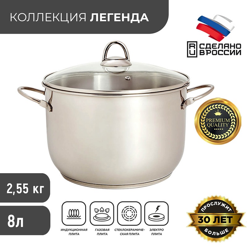 Кастрюля 8,0л "ЛЕГЕНДА" ТРС прут.руч. 3с120 (4)