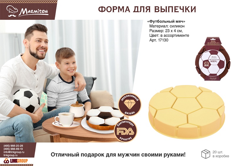 НовинкаФорма силиконовая Футбольный мяч 23*4 см цвет в ассортименте MARMITON 17130 (20/1)Артикул: 118393В наличии171 ₽