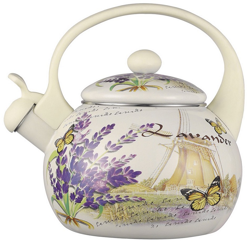 Чайник со свистком 2,5 л эмалированная сталь бакелитовая ручка наружное покрытие - эмаль с рисунком Подходит для индукции Z-4463 Lavender (6/1)