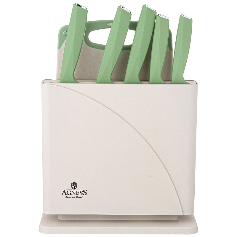 НАБОР НОЖЕЙ AGNESS НЖС НА ПЛАСТИКОВОЙ ПОДСТАВКЕ И РАЗДЕЛОЧНАЯ ДОСКА 7 ПР 911-763 (6/1)