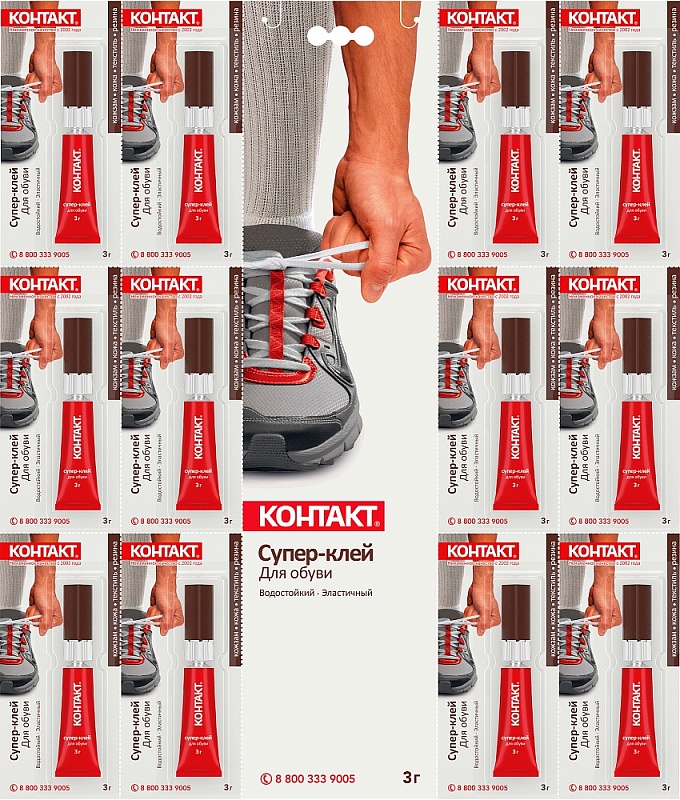Супер-клей "КОНТАКТ" для обуви 3 г (12 на карте) КМ 288-312 ОБ 22293 (288/12)