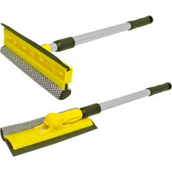 Для высоких окон существует стекломой с телескопической алюм. ручкой. Телескопическая ручка позволяет использовать стеклоочиститель для мытья высоких и труднодоступных мест. Удобная конструкция позволяет настроить рабочий процесс под рост любого человека, что обеспечит уборку с минимальными усилиями."