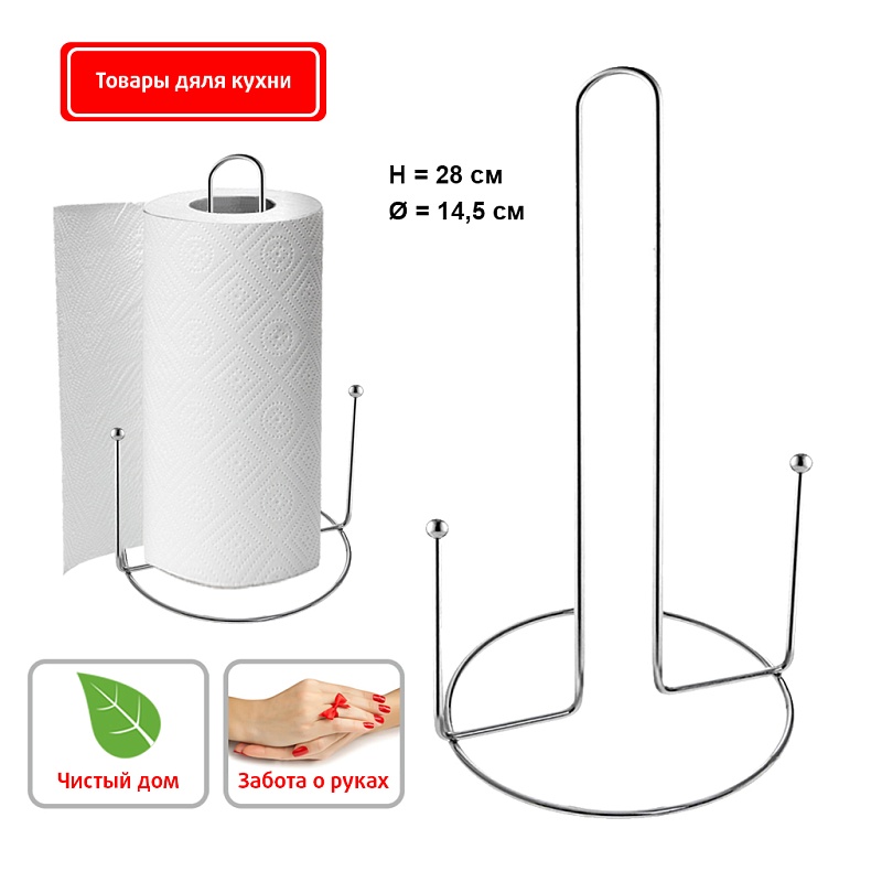 металл, 28см. Подставка под бумажные полотенца выполнена из прочного металла, который не будет деформироваться от активного использования. Элегантная в своей простоте конструкция станет практичным дополнением кухни.