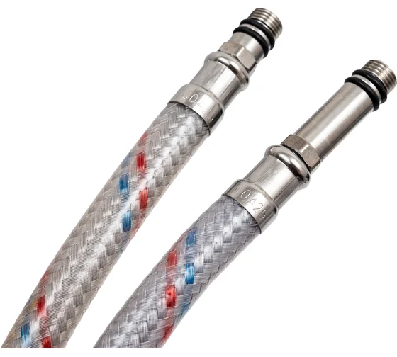 Из-за меньшей теплопроводности, по сравнению с шлангами с нержавеющей нитью, не конденсирует на себя влагу и не подвержен коррозии