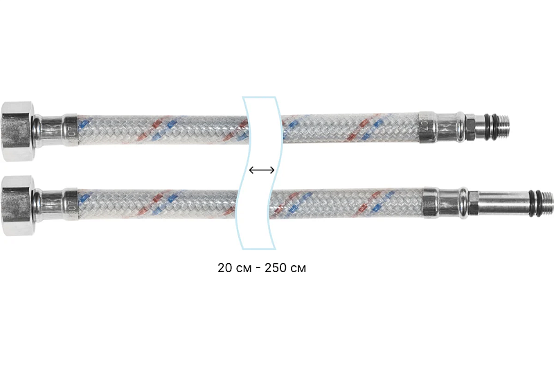 Из-за меньшей теплопроводности, по сравнению с шлангами с нержавеющей нитью, не конденсирует на себя влагу и не подвержен коррозии