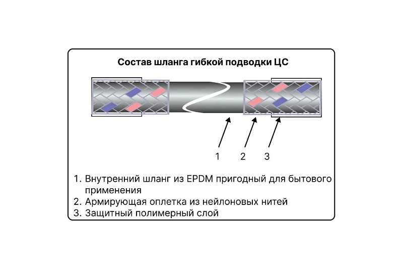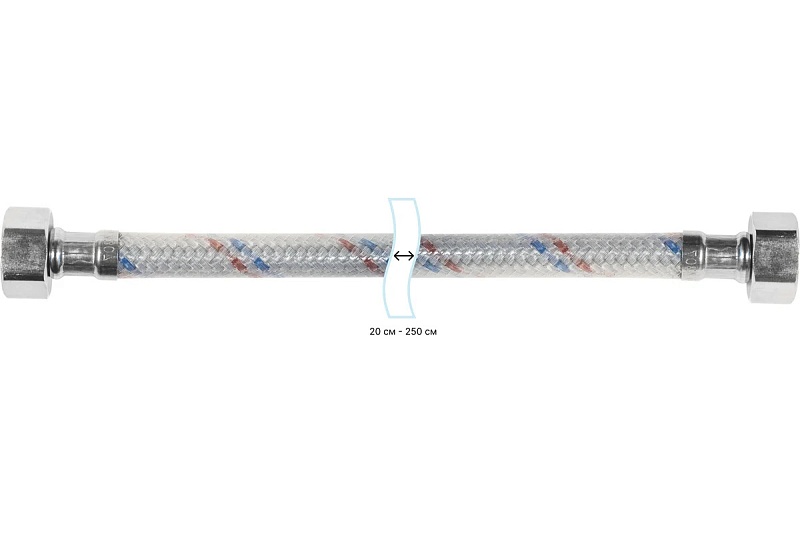 Из-за меньшей теплопроводности, по сравнению с шлангами с нержавеющей нитью, не конденсирует на себя влагу и не подвержен коррозии