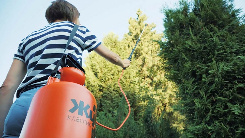 Плечевой пневматический опрыскиватель ОП-207 применяется для опрыскивания, подкормки и полива растений, кустарников, деревьев средней высоты, картофеля, а также для мытья стен, стекол и других хозяйственных работ. Особенностью модели является наличие цельной горловины, которая создает дополнительную герметичность бака, что гарантирует безопасность эксплуатации и предотвращает возможность вытекания жидкости во время работы. А благодаря удобной форме заливной воронки, создающей возможность для процеживания раствора перед использованием, становится проще использование сухих препаратов. Плечевой ремень, входящий в комплектацию, снимает напряжение с мышц спины во время эксплуатации. Также в опрыскивателе присутствуют подставка бака для устойчивости при эксплуатации, мерная шкала на баке, показывающая остаток содержимого и телескопический пластиковый брандспойт 650-970 мм. Дополнительную безопасность обеспечивает предохранительный клапан, который срабатывает при избыточном давлении в баке.