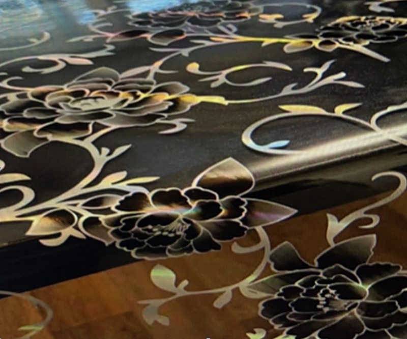 Прозрачный силикон толщиной 0,65 мм с запечатаным между слоями ЛАЗЕРНЫМ РИСУНКОМ.Выдерживает температуру до +80С