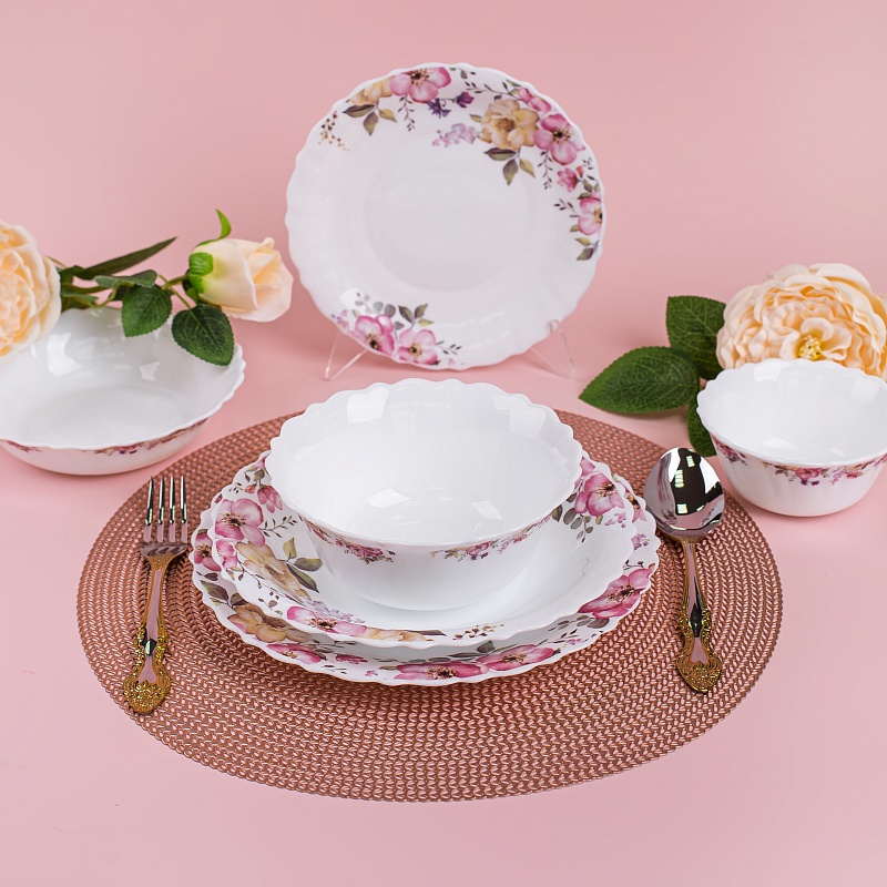 Салатник 12 см серии "SILVIA" с принтом из розовых цветов, выполнена из опалового стекла-стеклокерамики высокого качества иранского производителя.
