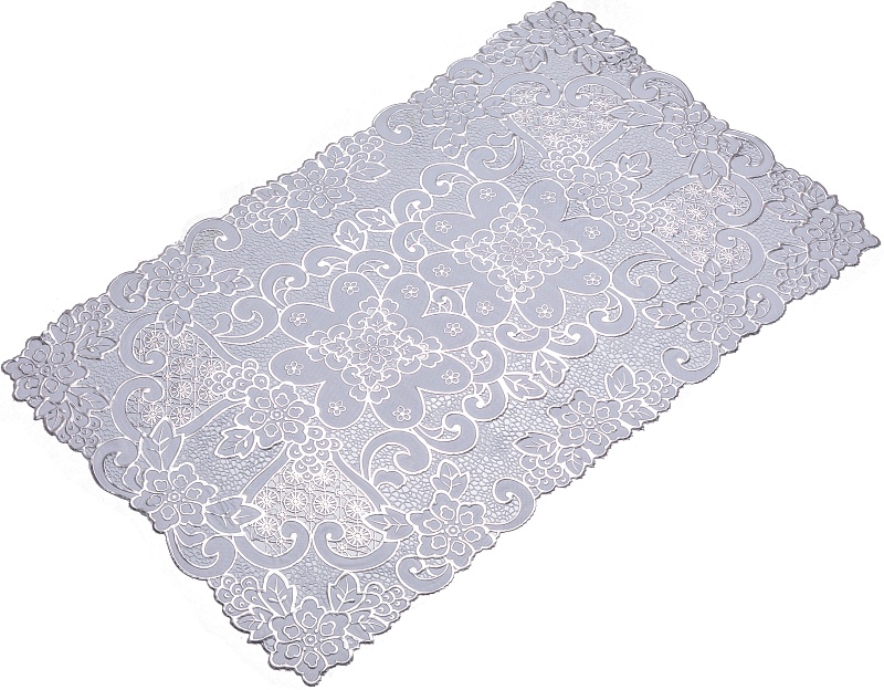 Салфетка для стола (100х60 см) кружевная с перламутровым напылением Лэйс Лайт из ПВХ без основы удобна в эксплуатации и является хорошим вариантом для практичной хозяйки, ведь она не только защищает стол, но также выполняет декоративную функцию.
