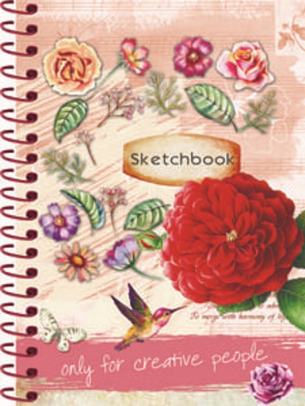 Скетчбук А5, 80л, КРАСНАЯ РОЗА И КОЛИБРИ (СК-0027/80-9192)на спир, 7БЦ, глянц. лам