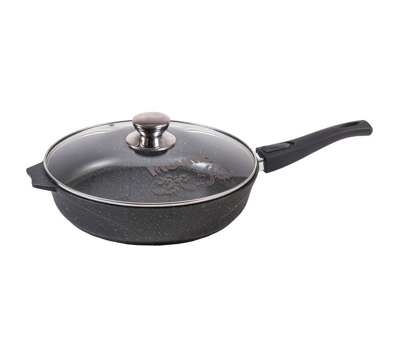 Сковорода 28см АП Гранит со съемной ручкой и стеклянной крышкой арт С028701 (8/1)