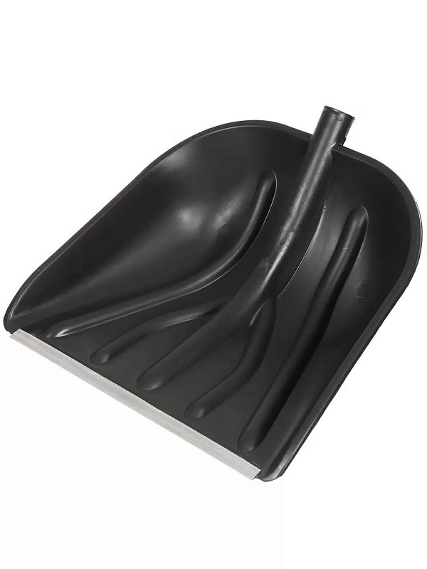 Лопата снегоуборочная пластмассовая «Купец» без черенка имеет габариты 400х390 мм, тулейку диаметром 32 мм и алюминиевую планку.