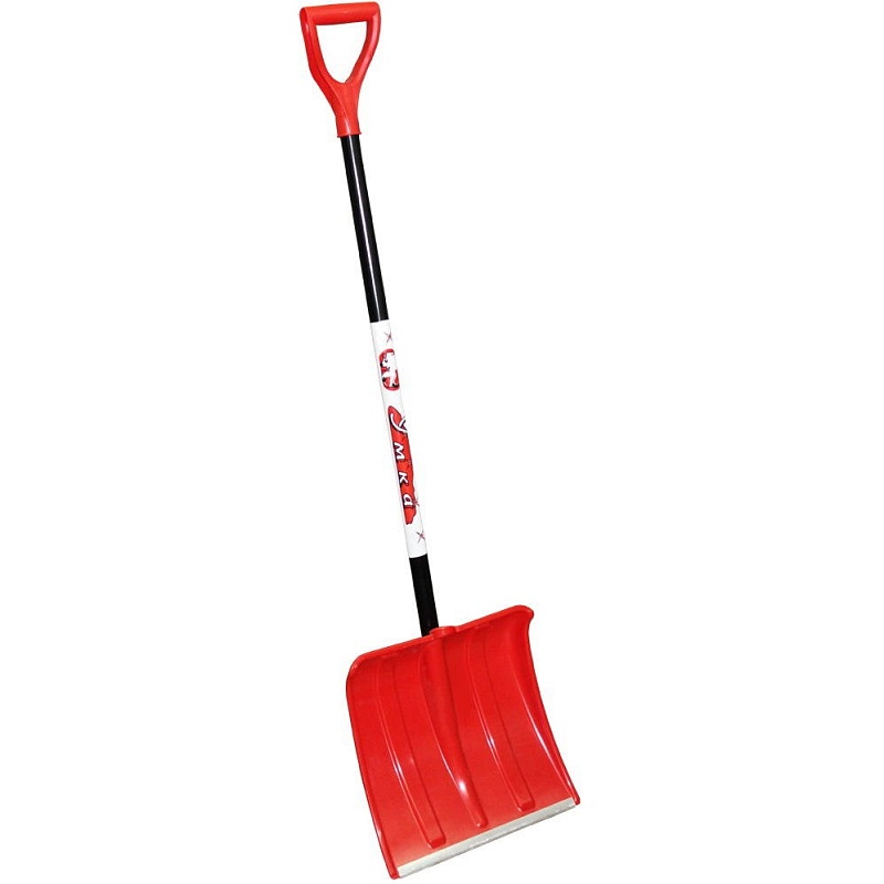 Лопата «Снежник» пластмассовая 380х370мм с алюм. планкой, алюм. черенком, V-ручкой, красная 100190 (5/5) Павлово