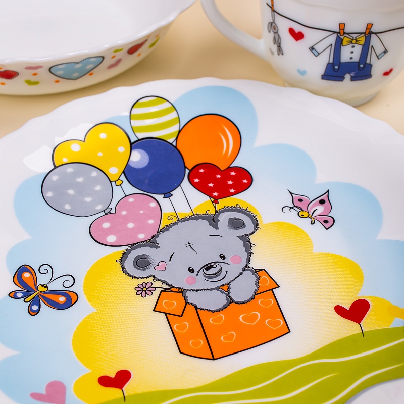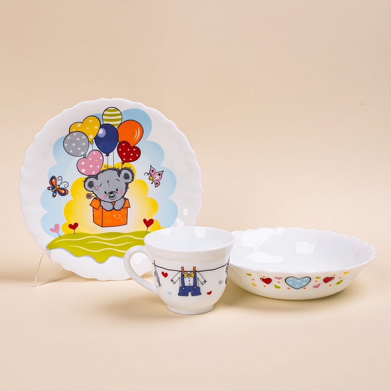 В состав набора входит: Чашка 200мл+ миска17,8 см+ тарелка 19,5см