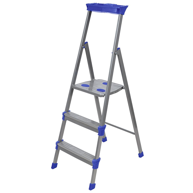 Металлическая стремянка с габаритами (в раскрытом виде) 420х630х1190 мм имеет 3 металлические широкие ступени 65 мм. Рабочая высота — 2825 мм. Есть лоток для инвентаря и отделение для инструментов. Особенности: высокая удобная дуга безопасности, широкая безопасная площадка со встроенными вставками противоскольжения и рифленой поверхностью. Максимальная нагрузка до 150 кг.