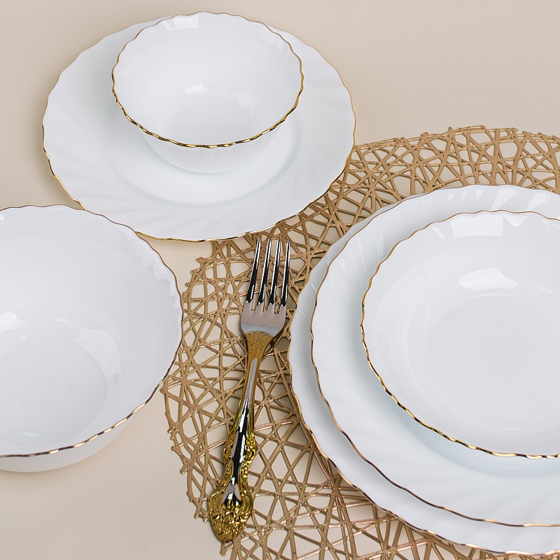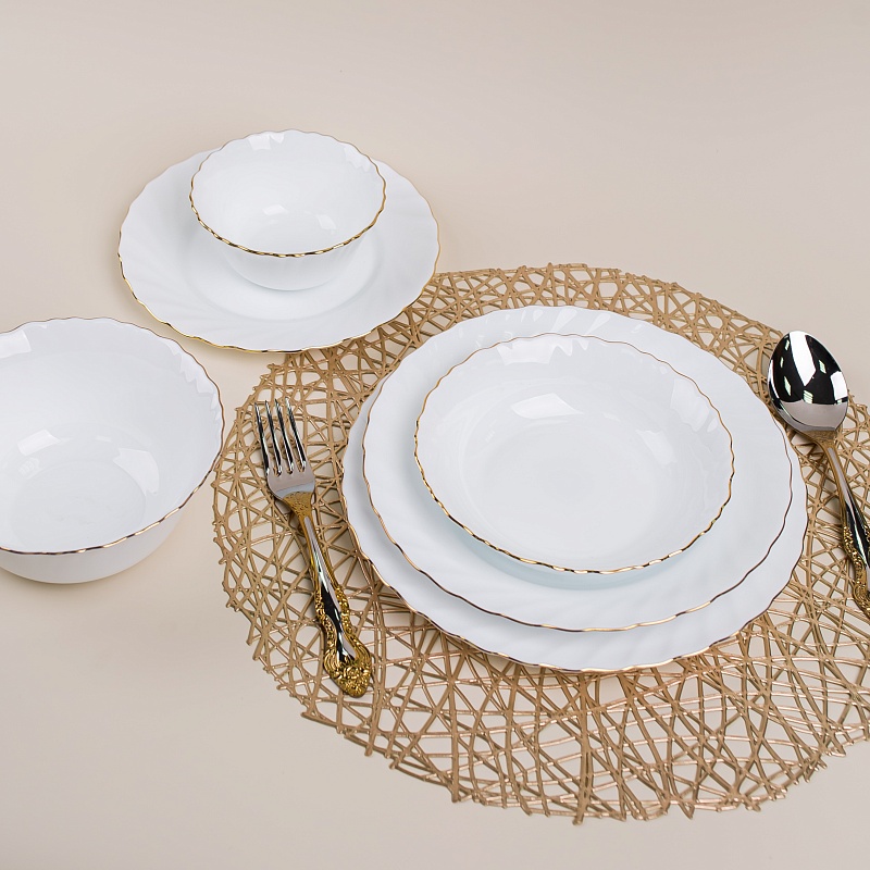 Набор обеденных тарелок отлично подойдет, как для ежедневного использования, так и для праздничного стола. Могут служить как блюдо для подачи. Простые формы и белоснежный цвет выгодно подчеркнут изысканность.