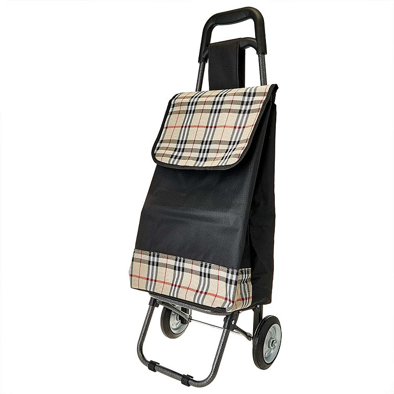 Тележка с сумкой с металлическими колесами DT-120 черный с бежевым (10/1)