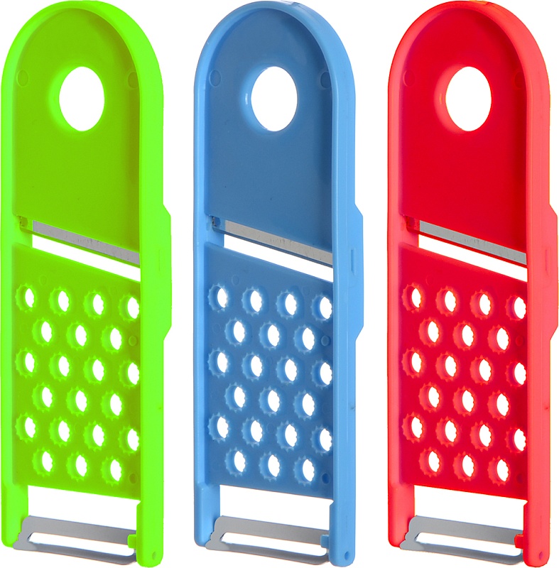 Терка-овощечистка незаменимое приспособление на кухне каждой домохозяйки. Представлен в трех цветах: синий, зеленый и красный.