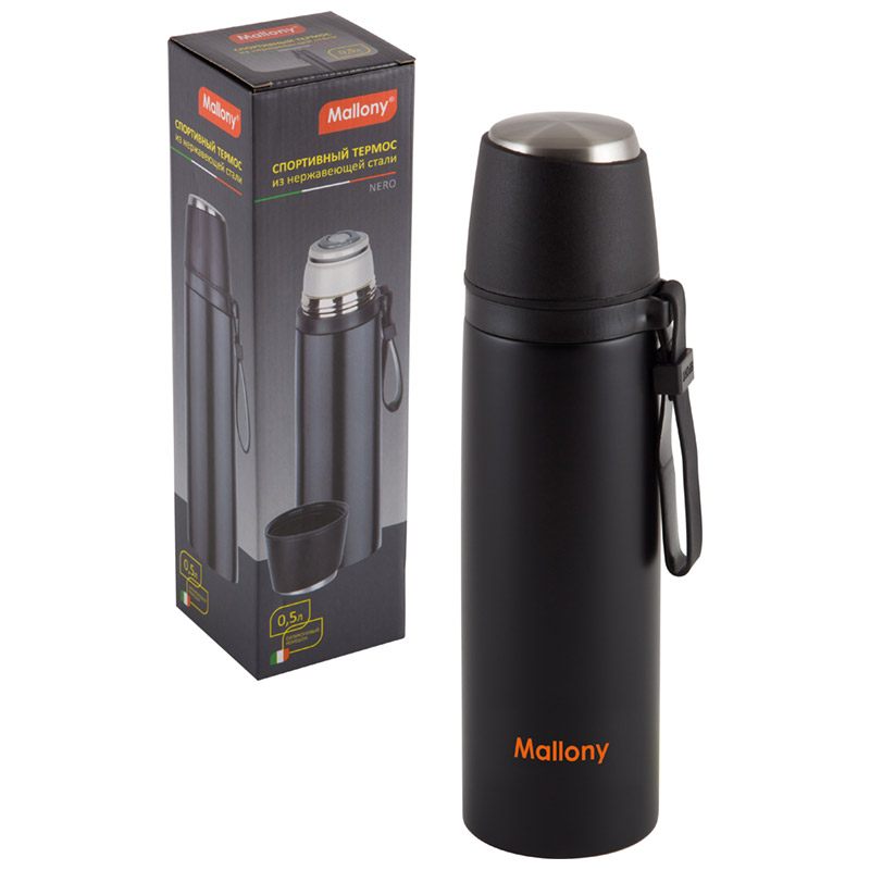 Термос с чашкой и силиконовым ремешком NERO 0,5 л 005242 (12/1)