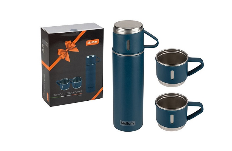 Набор: термос + ТЕРМОкружки FESTA 05 л 3 кружки синий 106055 (12/1)