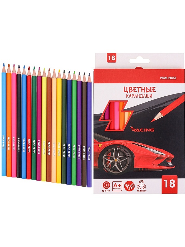 Цветные карандаши — это друзья детства каждого ребенка! Они не только помогают развитию мелкой моторики, но и способствуют выражению своих эмоций через рисунок! Яркие насыщенные цвета и качество — всё, что нужно для красивого рисунка и хорошего настроения! Цветные карандаши от компании "Проф-Пресс" представлены в наборе из 18 цветов и изготовлены в пластиковом шестигранном корпусе. Твёрдость: 2М. Диаметр: 3 мм.