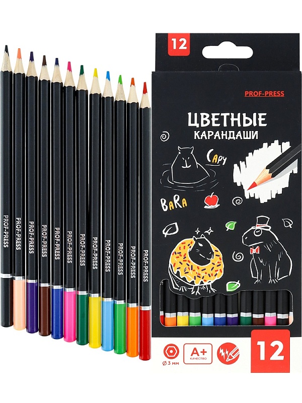 Цветные карандаши — это друзья детства каждого ребенка! Они не только помогают развитию мелкой моторики, но и способствуют выражению своих эмоций через рисунок! Яркие насыщенные цвета и качество — всё, что нужно для красивого рисунка и хорошего настроения! Цветные карандаши от компании "Проф-Пресс" представлены в наборе из 12 цветов и изготовлены в деревянном шестигранном корпусе. Твёрдость: 2М. Диаметр: 3мм.
