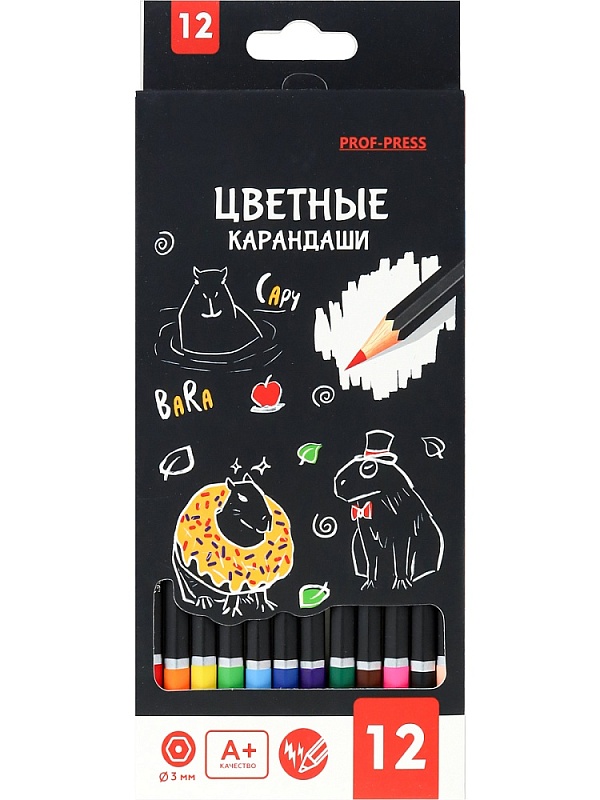 Карандаши цветные, набор,гексаг. 12цв. КАПИБАРЫ, d=3мм