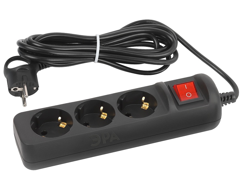Удлинитель электрический ЭРА UX-3es-5m-B с заземлением с выключателем 3 розетки 5м ПВС 3x0,75мм2 10А черный