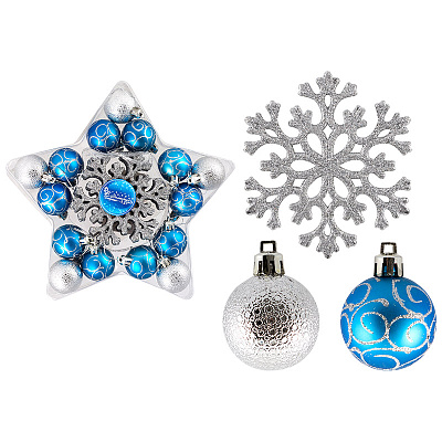 кол-во и цвет: 10 шт синий цвет, 5шт серебро, 10шт снежинок серебро