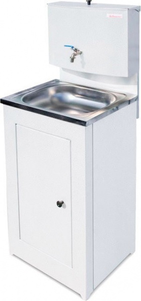 Умывальники «Акватекс» с габаритами 420х500х1260 мм приобретаются для дачи, гаража, мастерской или других мест без центрального водоснабжения. Умывальник выполнен из высококачественной стали, окрашен прочной краской. Раковина с габаритами 400х500 мм изготовлена из нержавеющей стали. Конструкция умывальника сборная. Он состоит из тумбы, которая незаметно скрывает способ отлива воды и позволяет производить отвод воды даже в канализацию, и бака со специальным краном для экономии воды, который изнутри обработан гальваническим цинковым покрытием, обеспечивающее долговечность изделия и исключающее появление ржавчины. Объем бака — 20 л.