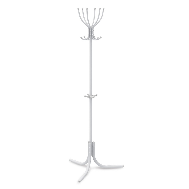Габаритные размеры — 600х600х1800 мм (ДхШхВ); 6 крючков; материал: каркас — стальн. труба с порошк. покрытием, наконечники — пластик; допуст. нагрузка на крючок — до 10 кг, допуст. нагрузка на вешалку — до 25 кг; цвет — матовый серый