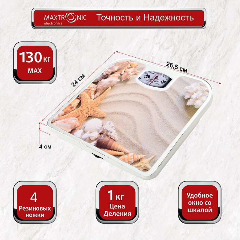 Весы напольные механические 130кг MAXTRONIC MAX-1631 (20)