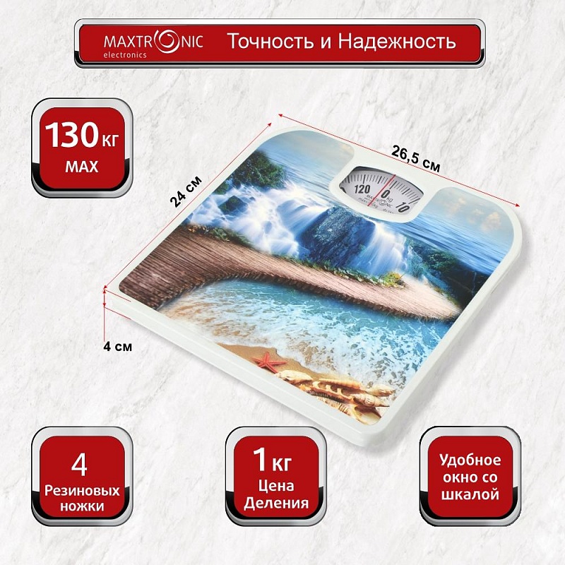 Весы напольные механические 130кг MAXTRONIC MAX-1647 10/20/1