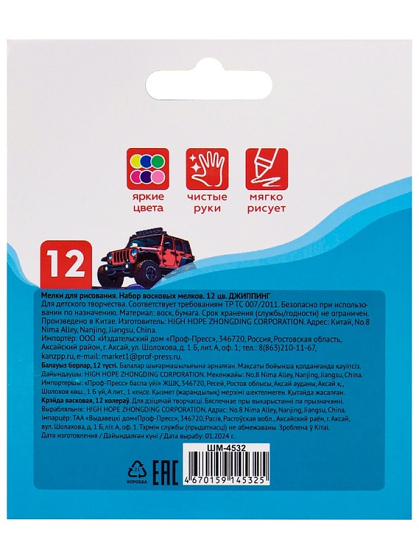АкцияНовинкаНабор восковых мелков для дет. творч. ДЖИППИНГ,12цвАртикул: 122909В наличии32 ₽37 ₽ Действует до 10.12.2025
