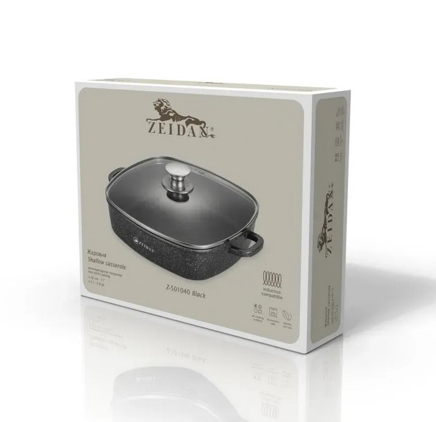 Жаровня со стеклянной крышкой – 4,5 л (28х28x7см), Z-501040 Black (6/1)