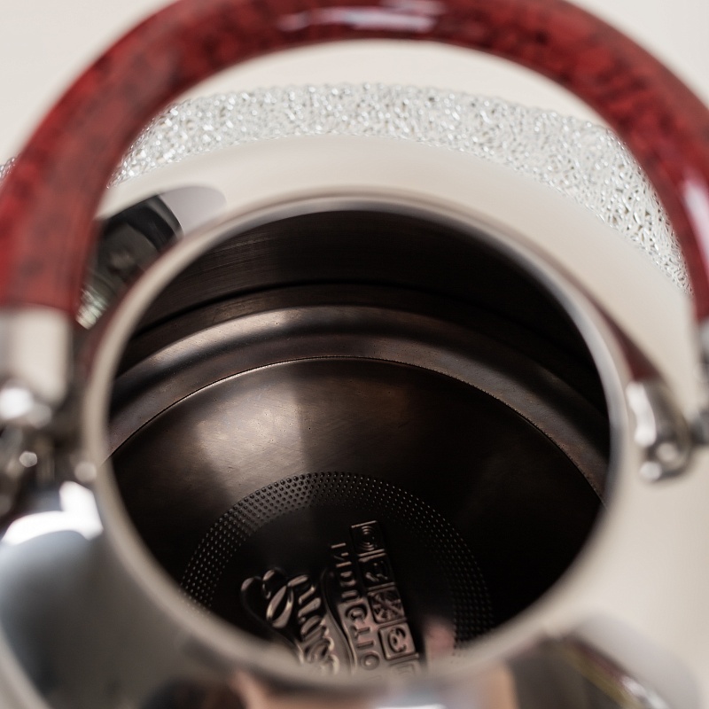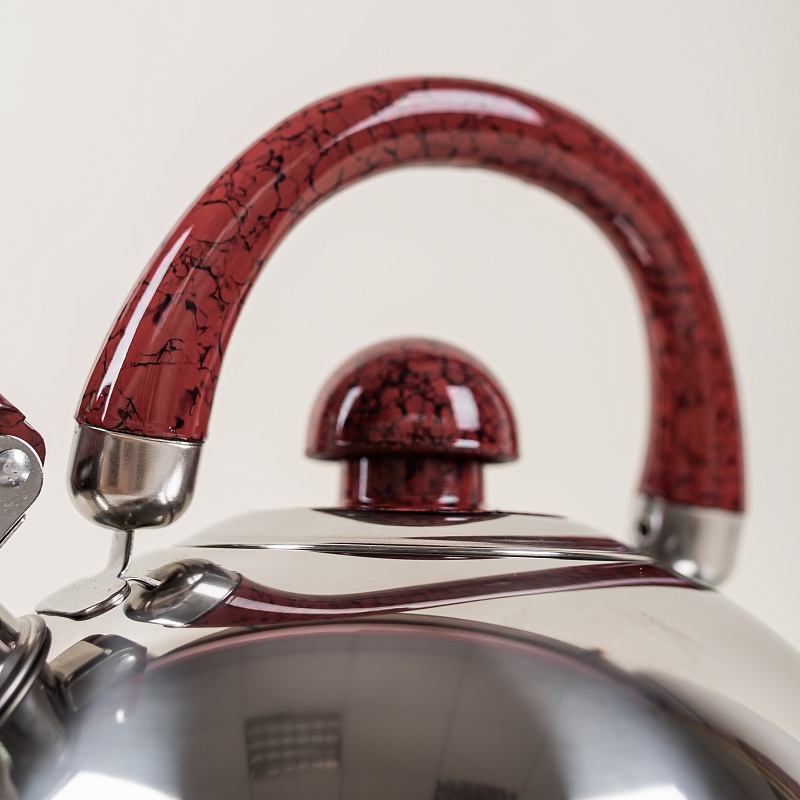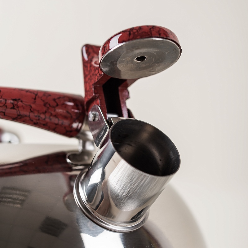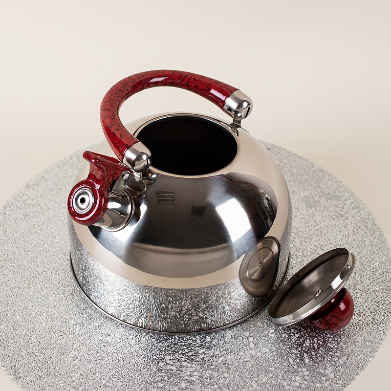 Данная модель чайника объемом 3 литра со свистком подходит для всех видов плит, включая индукционные. Изделие выполнено из высококачественной нержавеющей стали, что гарантирует долговечность и прочность даже при ежедневном использовании. Чайник оснащен удобной подвижной ручкой красного цвета и рычагом для открывания носика.