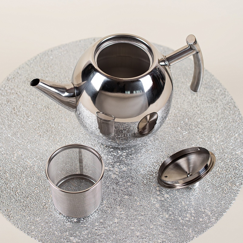 Данная модель чайника объемом 1,5 литра подходит для всех видов плит, включая индукционные. Изделие выполнено из высококачественной нержавеющей стали, что гарантирует долговечность и прочность даже при ежедневном использовании. Чайник оснащен удобной фиксированной ручкой из нержавеющей стали, а также ситечком для заваривания чая.