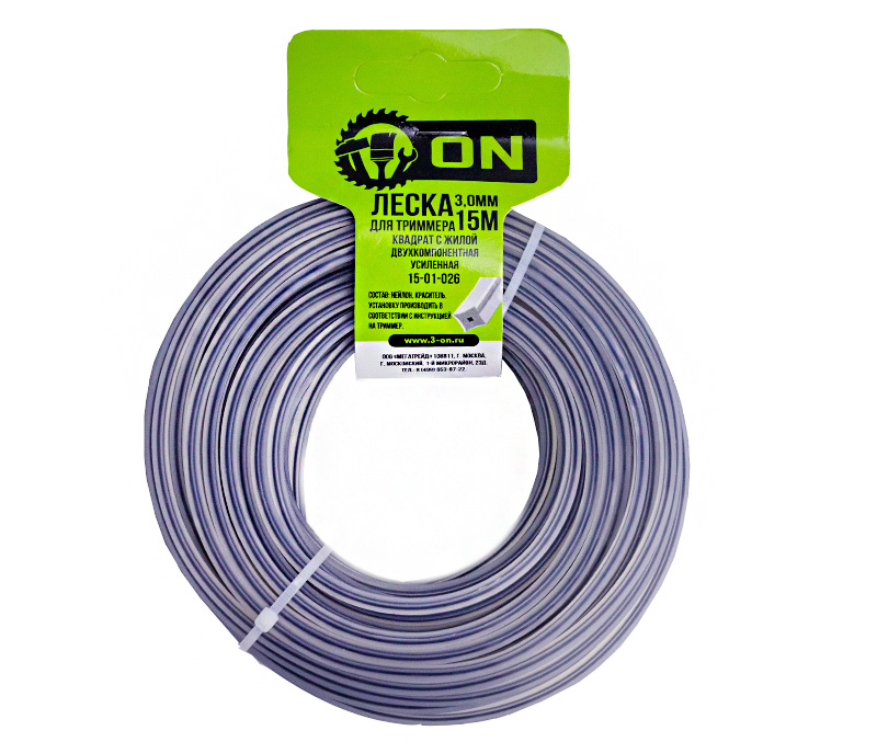 ON Леска триммерная «Квадрат» с жилой (двухкомпонентная, усиленная) 3мм х 15м 15-01-026 (130/1) в Кирове