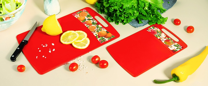Доска разделочная Bergamo большая 33,5x22 см делает процесс приготовления еды быстрее и приятнее. Стильный IML декор на лицевой стороне доски вплавляется в изделие на этапе литья, поэтому он долго будет поднимать настроение во время готовки, а также поможет различать рабочие стороны доски. Материал досок отличается не только гигиеничностью и высокой стойкостью к мытью и впитыванию запахов, но и сохраняет ножи острыми, в том числе керамические. На матовой поверхности доски не видны следы от ножа. По краям доски идет небольшой бортик, не позволяющий соку и жидкости вытекать с доски на рабочую поверхность. Имеет удобную ручку для переноски и хранения на крючке. Доска изготовлена из безопасного на 100% перерабатываемого полипропилена, не содержит бисфенола А. Высококачественный материал не боится перепадов температур.